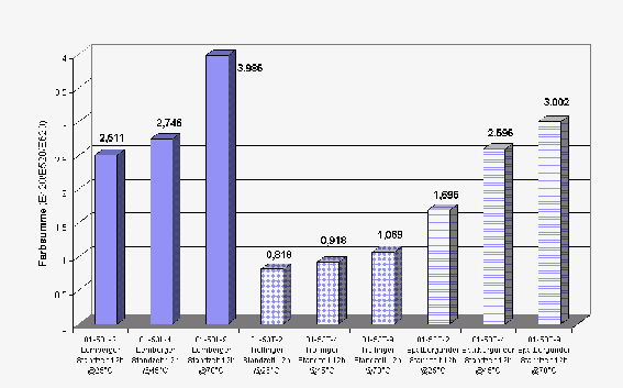 Abbildung 7: Veränderung der Farbsummen in Abhängigkeit von der Temperatur während der Maischestandzeit