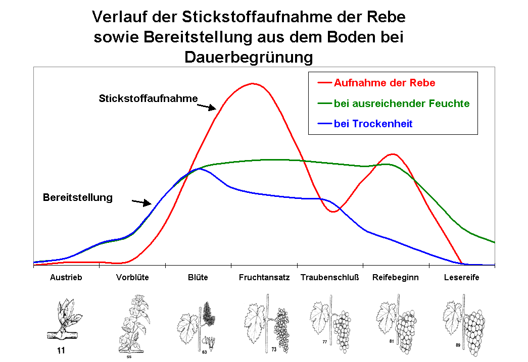Abbildung 1: Stickstoffaufnahme der Rebe und Stickstoffbereitstellung des Bodens bei Dauerbegrünung