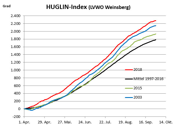 Summenkurven des HUGLIN-Index in Weinsberg. Die Wetterstation der LVWO Weinsberg