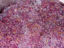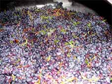 Im weiteren Verlauf der Maceration kann eine Verfärbung der intakten Beeren von blau nach violett beobachtet werden. Dieser Effekt setzt sich weiter fort, bis nach cirka 12 Tagen die violett gefärbten Beeren überwiegen.