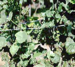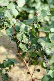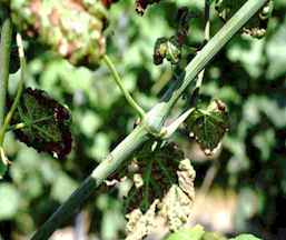 Abbildung 4: Unregelmäßige Internodien, verdickte Nodien und Absterbeerscheinungen an Ranken durch Bormangel oder -überschuss |