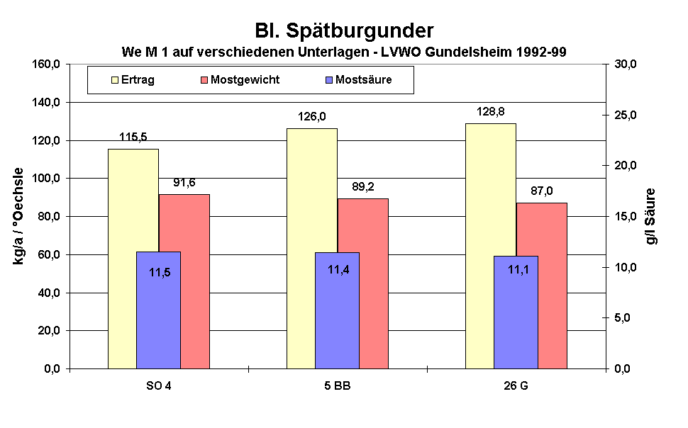 Abbildung 7: Unterlagenvergleich beim Spätburgunderklon We M 1 |