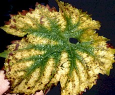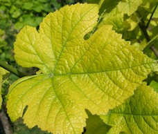 Magnesiummangel bei alten Blättern verschwindet das Blattgrün zwischen den Blattadern. bei Weißwein sorten bilden sich gelbliche Aufhellungen,