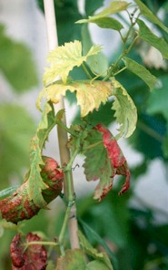 Phosphormangel schmutzig braune Blattrandverfärbung, nachlassende Wüchsigkeit und schlechter Fruchtansatz aufgrund der im allgemeinen sehr guten Phosphatversorgung der Weinbergsböden äußerst selten. |