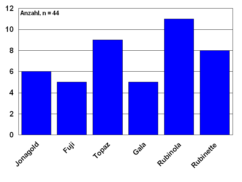 Das Ergebnis ist erstaunlich: Die 'süßen Sorten’ Fuji und Gala haben sogar am schlechtesten abgeschnitten und wurden von den etwas säurebetonten Sorten Rubinette und Topaz übertroffen. Das gute Abschneiden der Sorte Rubinola beeindruckt auch in anderen Geschmacksverkostungen immer wieder. Ausgewogener Gesckmack und nicht oxidierende Apfelschnitze sind die überzeugenden Argumente dieser Sorte. Die Standardsorte Jonagold landete auf einem mittleren Platz. Sicherlich ist das Ergebnis mit lediglich 44 Probanden statistisch gesehen nicht repräsentativ. Trotzdem muss die Aussage, dass Kinder nur süßlich betonte Apfelsorten mögen, in Zweifel gezogen werden.