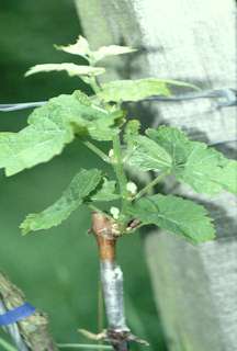 Die bisherigen Erfahrungen mit der Holz-auf-Grün-Veredlung in den Jahren 1999 und 2000 sind sehr positiv. Die Anwuchserfolge lagen bei fast 100%. Die Verwachsung ist ähnlich stabil wie bei der Herstellung von Pfropfreben. Im Folgejahr kann bereits mit einem 50%igen Ertrag gerechnet werden.