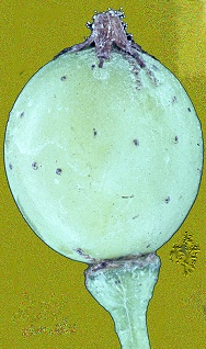Abbildung 7: Infiziertes Blütenkäppchen und sichtbare Abwehrmaßnahmen (Verkorkung) der grünen Beeren