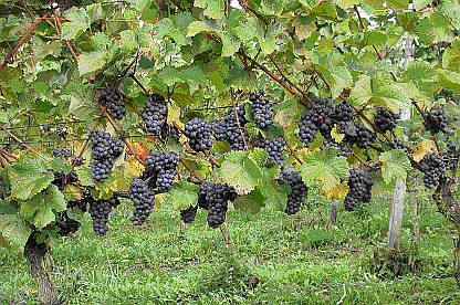 Abbildung 9: Für Qualitätsproduktion optimierter Schwarzrieslingbestand ‑ aber zu kompakte Trauben