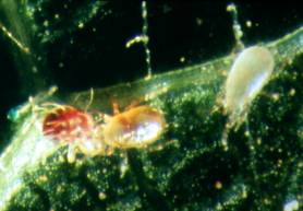 Abbildung15: Raubmilbe mit Spinnmilbe